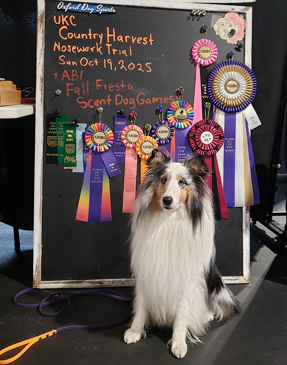 Vincen Oct 19, 2025, at a UKC Nosework and ABI Scent Game trial.